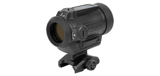 Features: Specifications: Battery life: 50,000 hours. Solar Failsafe Technology: the ARO works even without a battery. Shake Awake Technology: when the ARO detects movement, it turns on at the last intensity used. Dot: 2 MOA red. Battery: CR2032. Waterproof rating: IPX8. Adjustment range: +/- 50 MOA. Brightness level: 8 daylight levels and 4 IR levels. Click value: 0.5 MOA. Window size: 1.02''. Chassis: 6061 aluminium. Mounting: 1X 1/3 co-witness and 1 low mount.